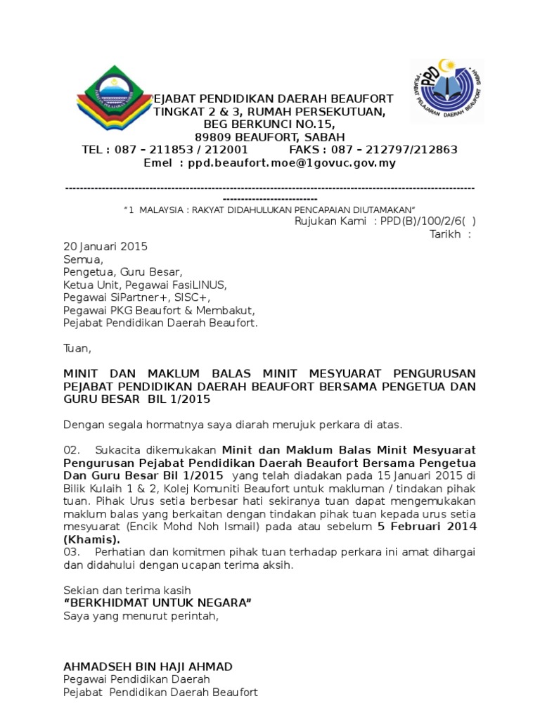Surat Rasmi Maklum Balas Surat Rasmi U