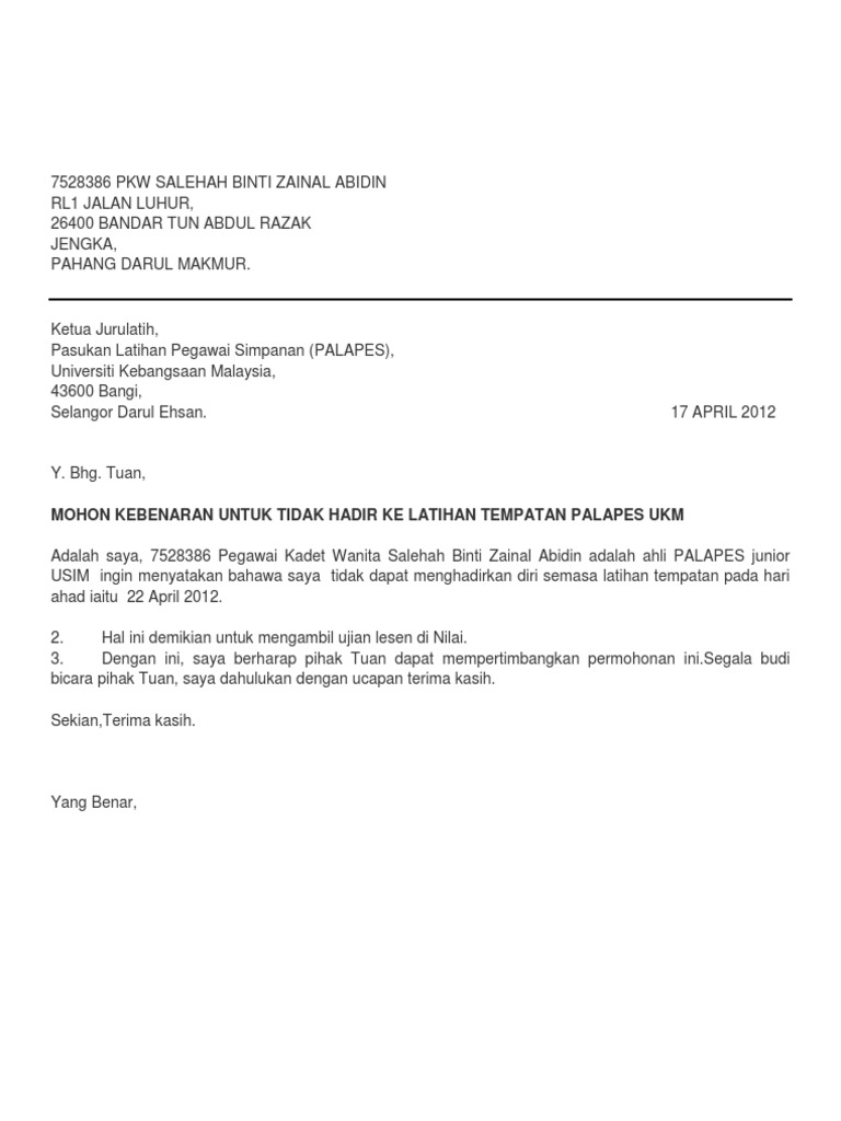 Tanpa Gaji Contoh Surat Rasmi Permohonan Cuti Kerja