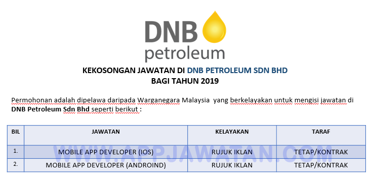 Jawatan Kosong Terkini Di Dnb Petroleum Sdn Bhd Appjawatan Malaysia