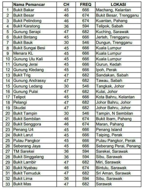 Semak Lokasi Pemancar Utama Kawasan Digital Terestrial Tv Malaysia Mytv Facebook