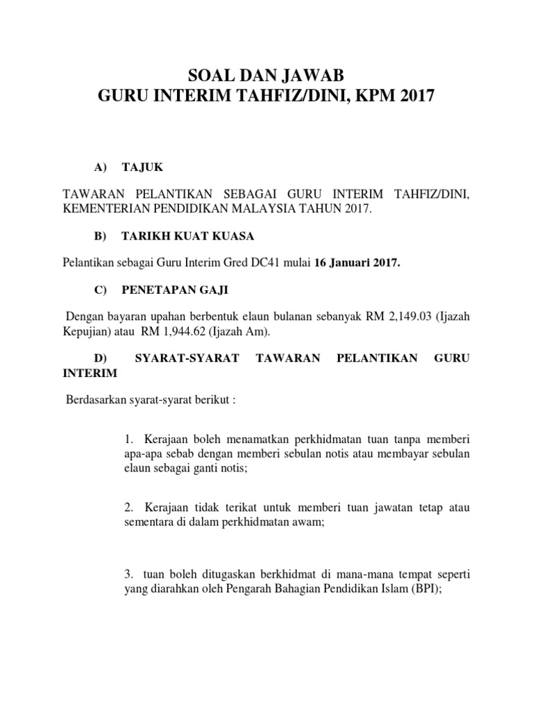 Pengambilan Guru Interim Tahfiz Dan Guru Interim Dini 2017 Pendidik2u