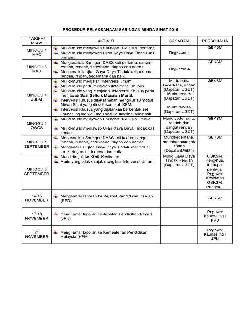 Prosedur Pelaksanaan Saringan Minda Sihat 2016 Dan Seterusnya Pdf