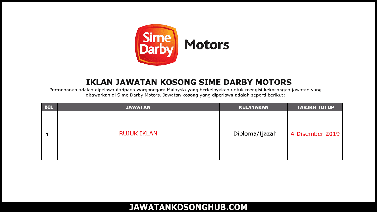 Jawatan Kosong Terkini Di Sime Darby Motors 12 Dec 2019 Jawatan Kosong 2020 Kerja Kosong Terkini Job Vacancy