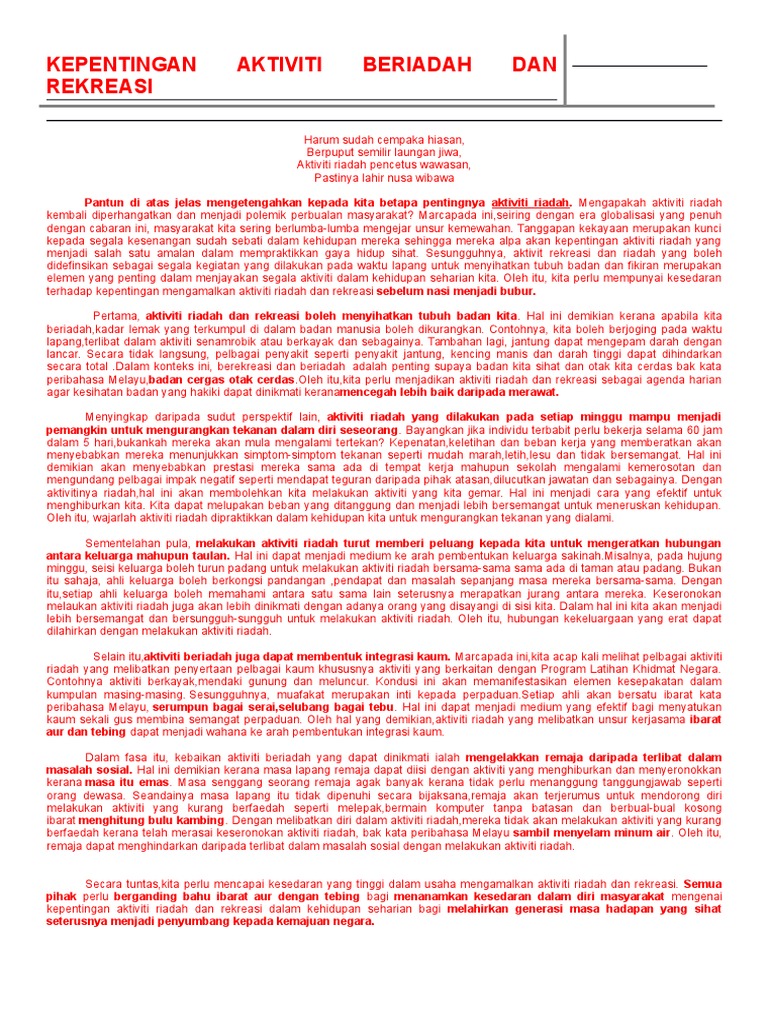 Contoh Karangan Kebaikan Aktiviti Riadah Docx