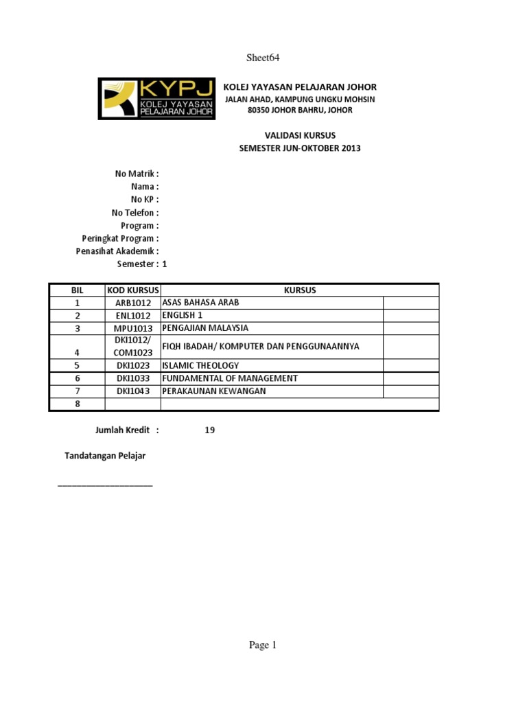 Template Validasi Subjek Program Dalaman Jun Okt 2013