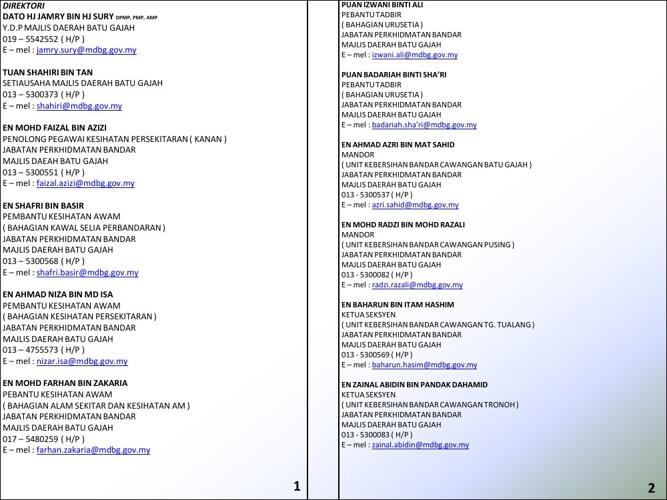 Majlis Daerah Batu Gajah Direktori
