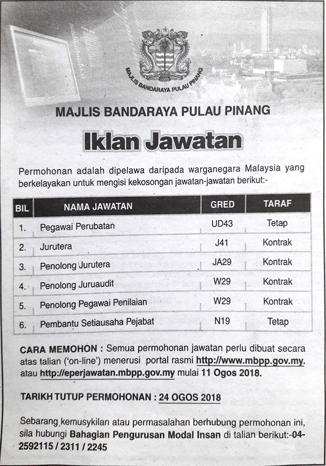 Iklan Jawatan Kosong Mbpp Majlis Bandaraya Pulau Pinang Mbpp Facebook