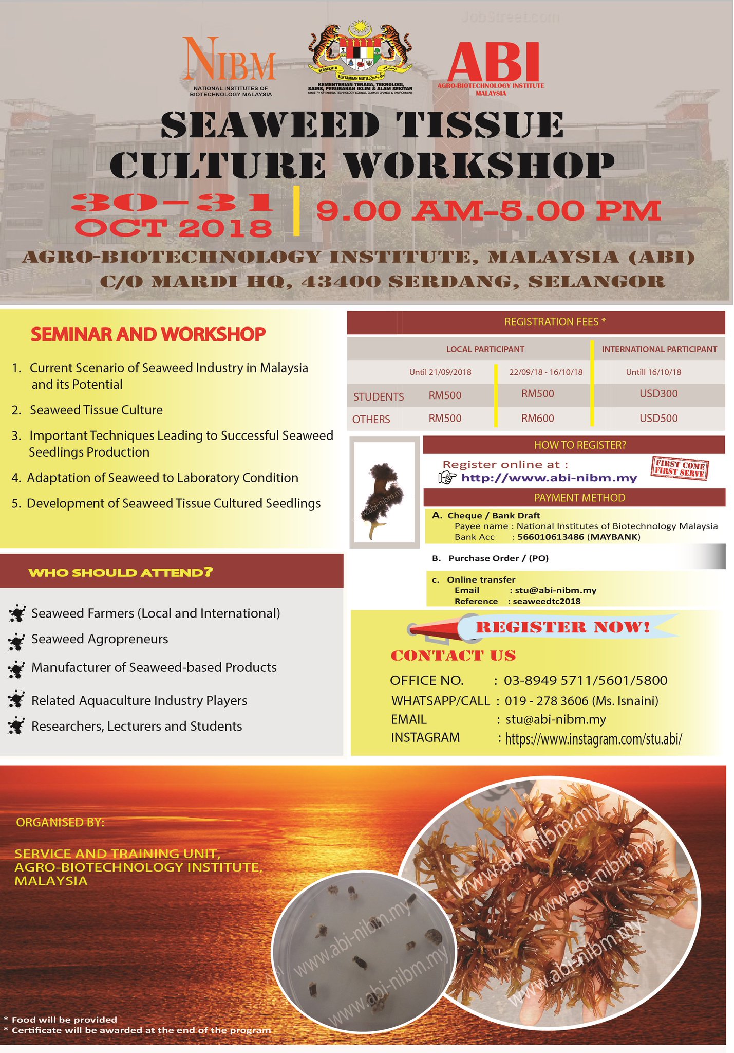 Nibm On Twitter One Of Our Institutes Agro Biotechnology Institute Malaysia Will Be Organizing A Workshop Seaweed Tissue Culture Workshop Clik This Link To Register Https T Co A4duluuucm Come And Join Us Nibm Abi