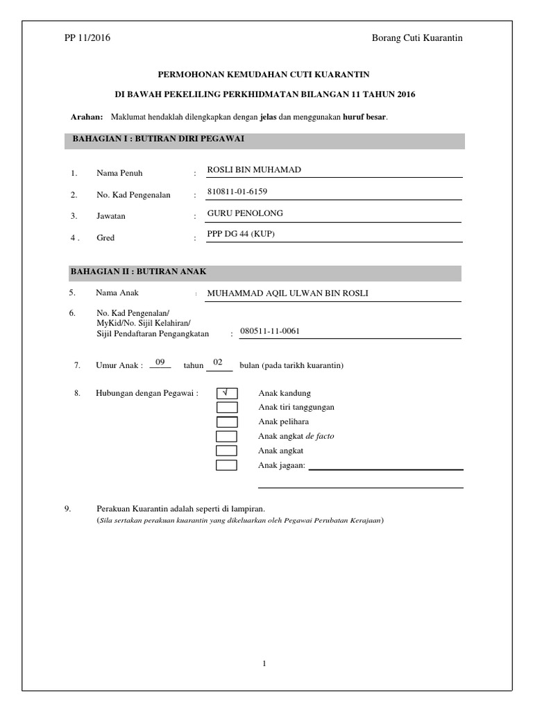 Borang Cuti Kuarantin Pdf