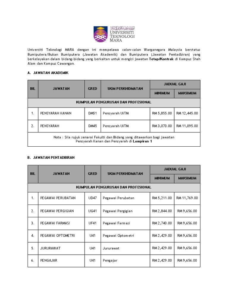 Jawatan Kosong Di Universiti Teknologi Mara Uitm Appjawatan Malaysia