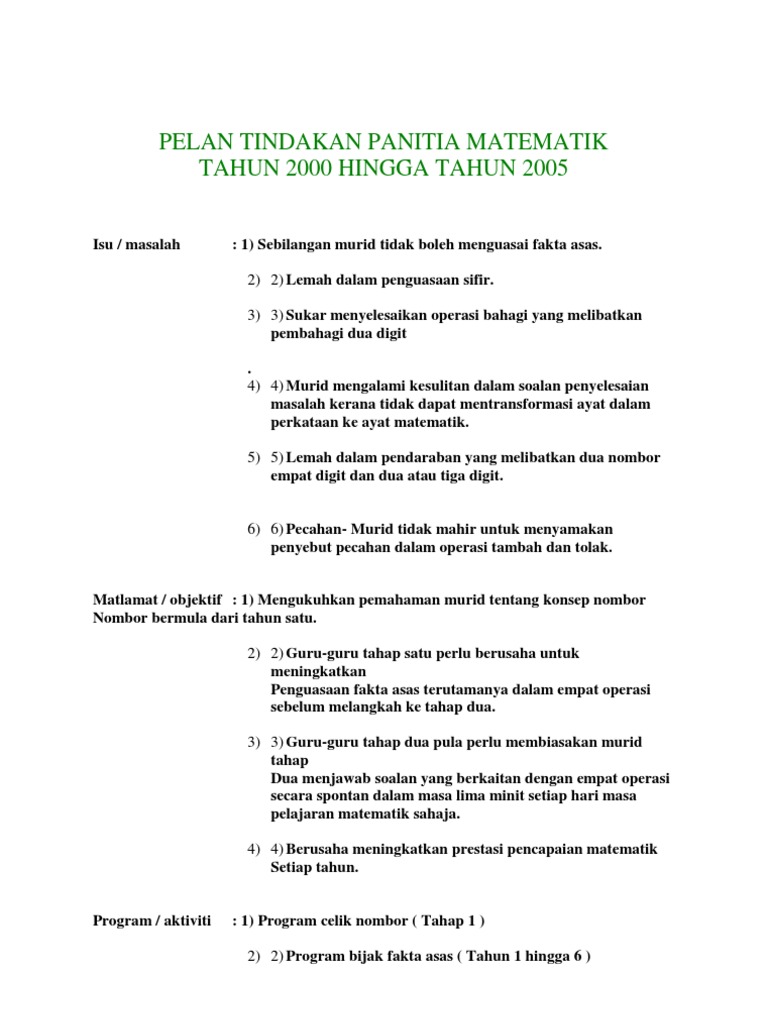 Pelan Tindakan Panitia Matematik