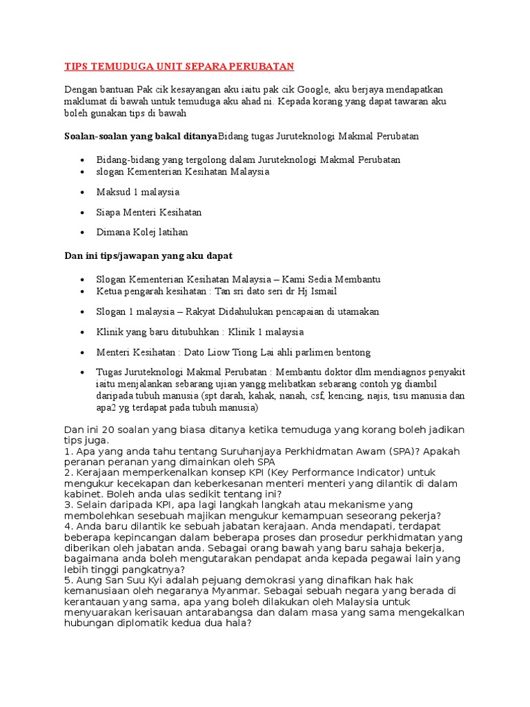 Soalan Temuduga Juruteknologi Makmal Perubatan U29 Blog Tips Kerjaya